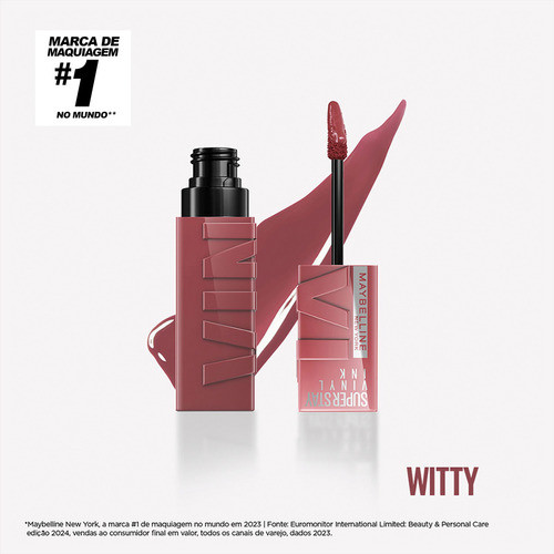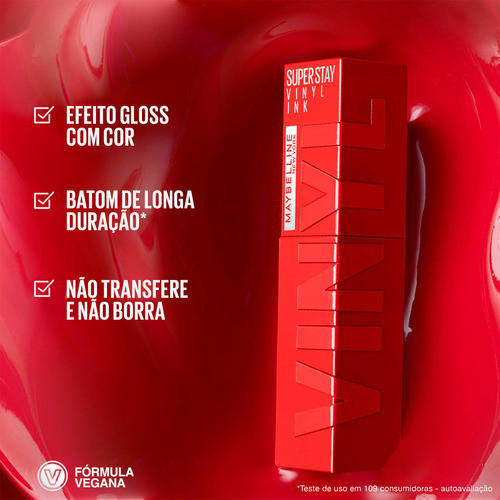 Batom Líquido Maybelline Ny Superstay Vinyl Ink com efeito Vinyl que mantém os lábios brilhantes e bonitos durante o dia inteiro. Pertencente à família Superstay, reconhecida por sua longa duração, este batom não é apenas uma expressão de cor intensa, mas também de confiança.