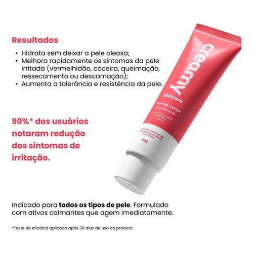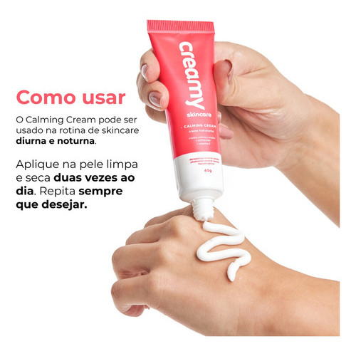 Este produto apresenta uma combinação de ativos chamada Creamy Calming Complex, que ajuda a reduzir a vermelhidão, descamação e coceira, sintomas comuns em peles secas ou sensibilizadas.